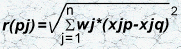 so the Euclid distance r(pq) in n-dimension space will defined as follows: